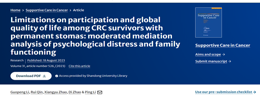 《Limitations on participation and global quality of life among CRC survivors with permanent stomas: moderated mediation analysis of psychological distress and family functioning》