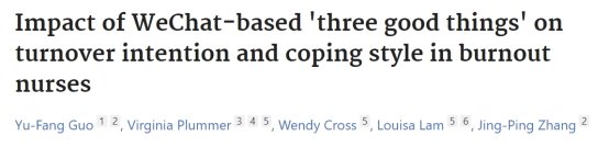 《Impact of WeChat-based “three good things” on turnover intention and coping style in burnout nurses》