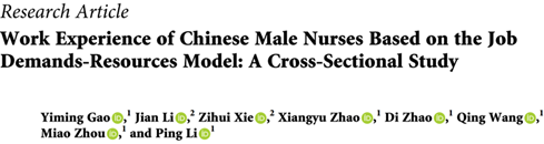 《Work Experience of Chinese Male Nurses Based on the Job Demands-Resources Model: A Cross-Sectional Study》